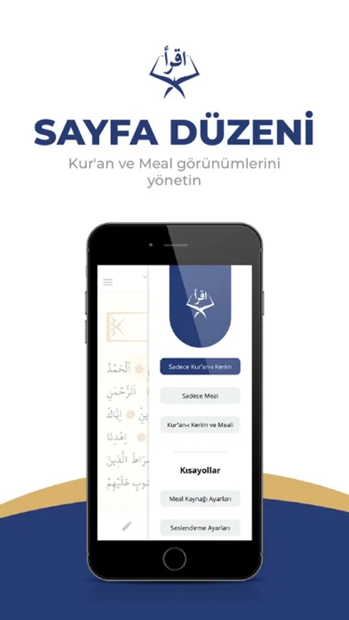 -Sayfa Düzeni: Orjinal metin ve meal gösterimlerini yönetmenize imkan sağlar.