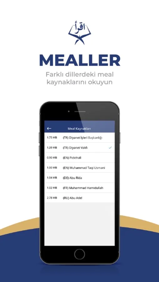 Kur'an-ı Kerim ve 5 dilde meal seçeneğini hizmete sunar.