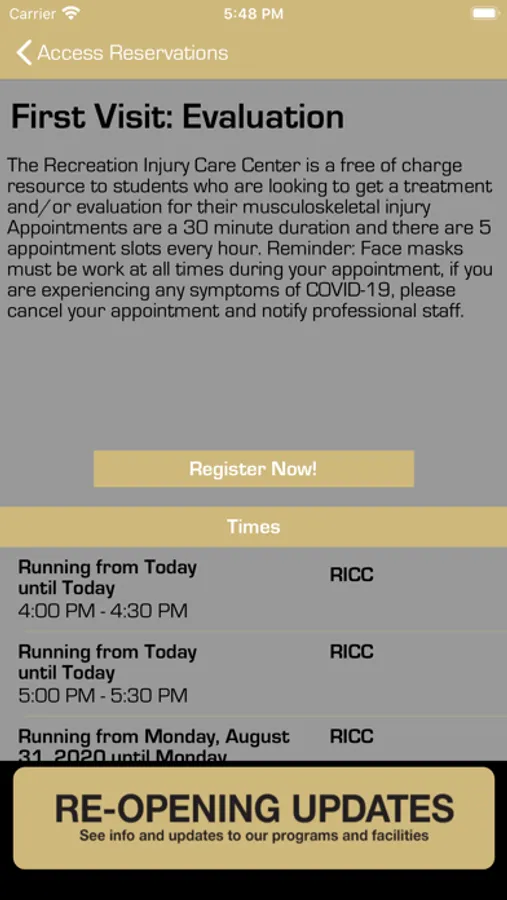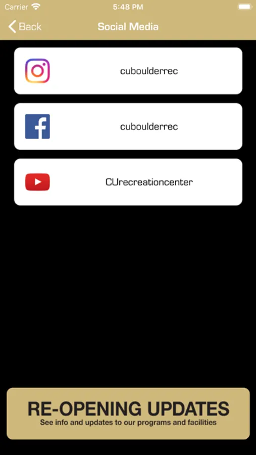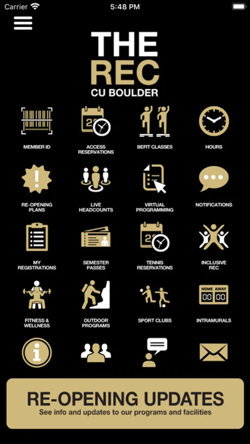 The official app of CU Boulder Recreation Services. Stay up to date with notifications, use the barcode ID for entry, find information and register for programs, and more.