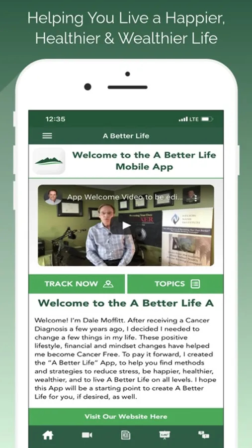 Welcome! I’m Dale Moffitt. After receiving a Cancer Diagnosis a few years ago, I decided I needed to change a few things in my life. These positive lifestyle, financial and mindset changes have helped me become Cancer Free. To pay it forward, I created the “A Better Life” App, to help you find methods and strategies to reduce stress, be happier, healthier, wealthier, and to live A Better Life on all levels. I hope this App will be a starting point to create A Better Life for you, if desired, as well.