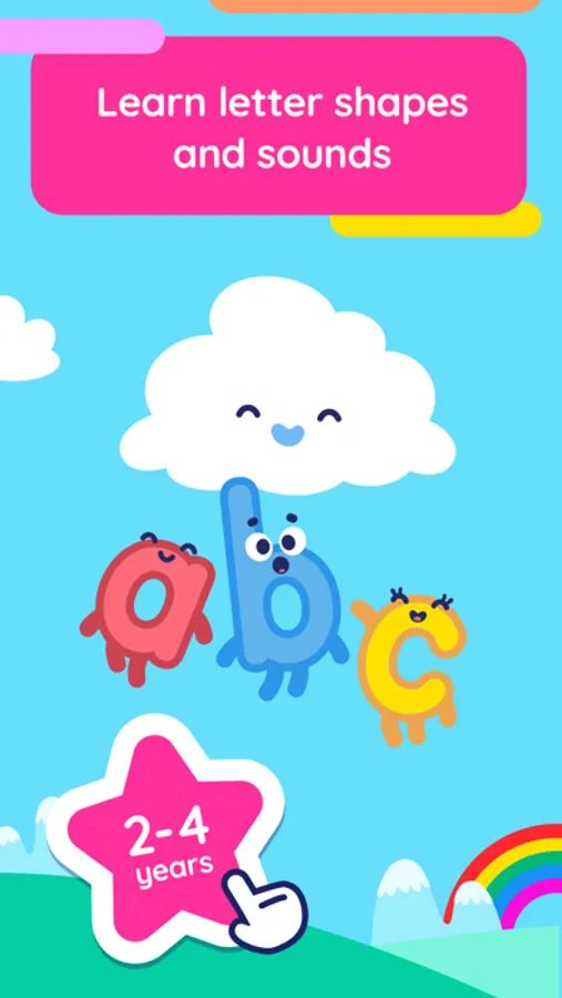 Teach your child how to associate letters with commonly occurring sounds as you play with them and feed them to the hungry cloud. Your children will be delighted as letters transform into objects they know and stickers they can collect! As they pass levels, they will learn to recognize letter shapes, which sounds they represent, and what words they relate to as they move through an educational, interactive playground adventure.