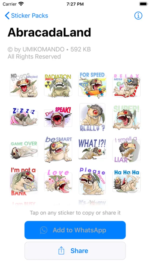 This stickers App ABRACADALAND now consists of 5 stickers packs, and I am ready to expand this stickers App as long as you like ABRACADALAND.
