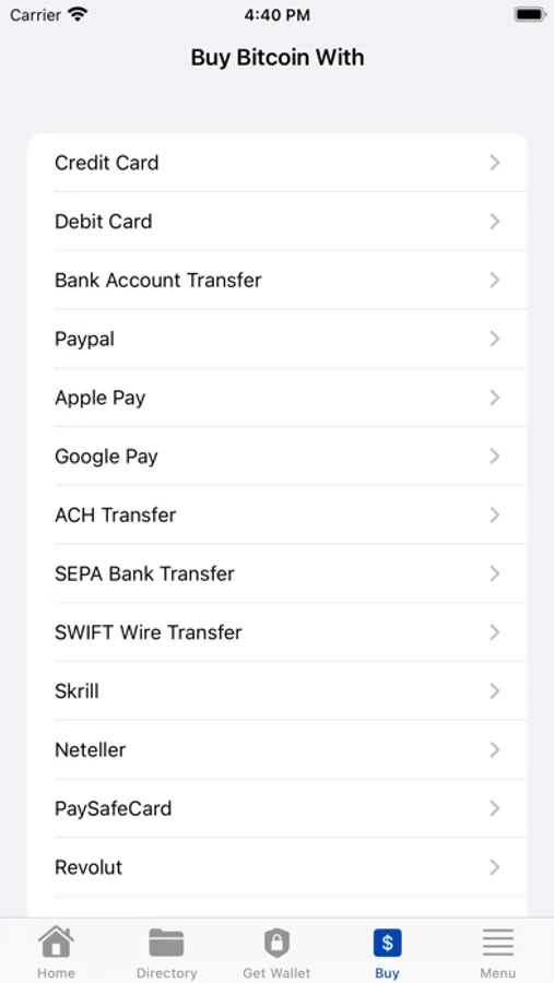 • Read useful guides about how to buy bitcoin using the most popular payment methods including credit card, bank transfer, PayPal, Apple Pay, Google Pay, ACH, SEPA, Wire Transfer, Skrill, Neteller, PaySafeCard, Revolut, and cash.