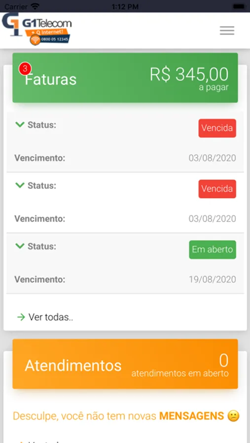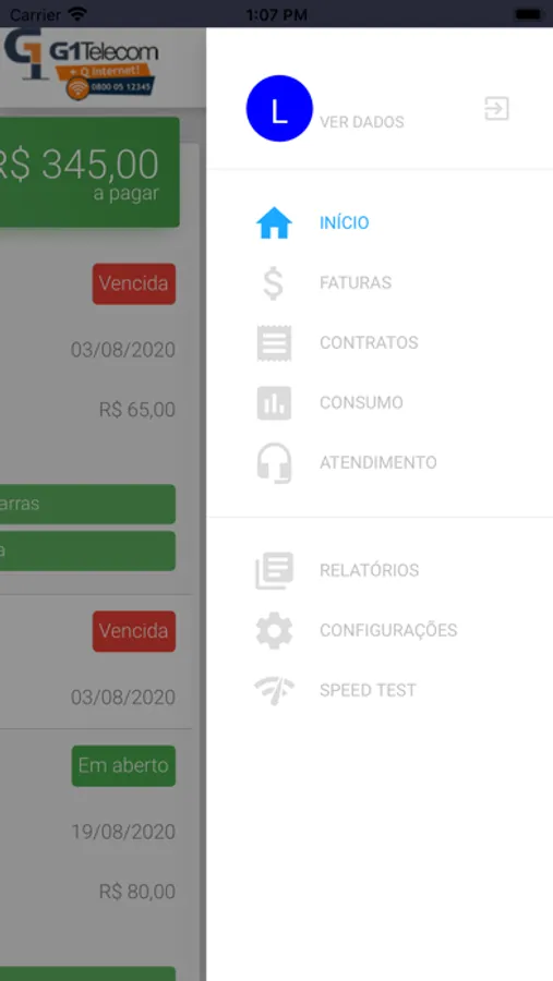 Aqui você econtra suas faturas, atendimento, contrato, consumo geral e muitos mais.