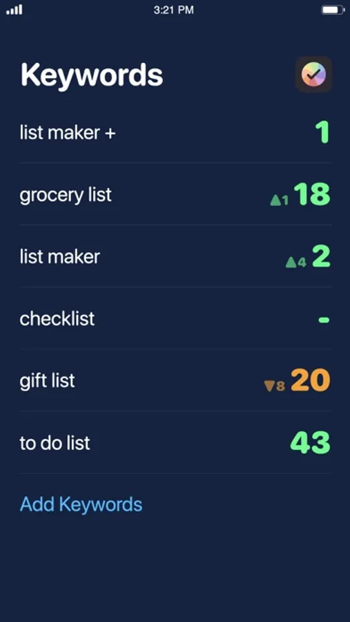 Keyword Tracker lets you track and monitor app rankings for keywords that drive the most downloads. Track multiple apps and even competitor apps to see how they rank for relevant keywords.