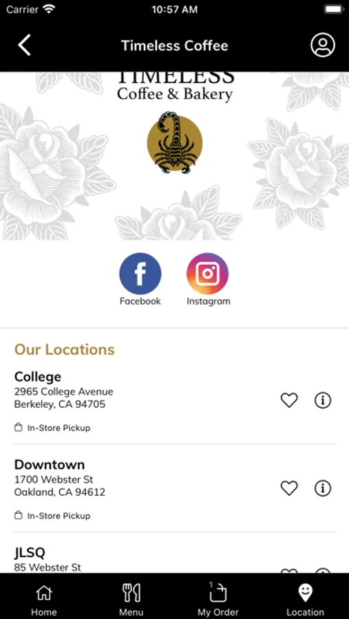 Full selection of your favorite Timeless items, all available to order ahead for in-store pick up! Order your favorite hot or iced drinks, sweet and savory baked goods, chocolates, whole cakes, coffee beans, and more. Customize your drink and have your advance order ready for pick up at the Timeless location of your choice. Re-order easily from your order history or save your favorite items and Timeless locations. Enroll in Timeless' loyalty program and seamlessly earn rewards for both mobile orders and in-store purchases.