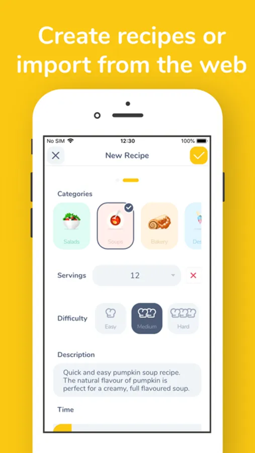 Organize your recipes in categories with 50+ beautiful category icons – Pasta, Pizza, Salads, BBQ, Dinner, Desserts, Thanksgiving, Christmas… Customize the existing categories or add new ones. Create and organize all the categories that you want and classify your recipes under those categories.