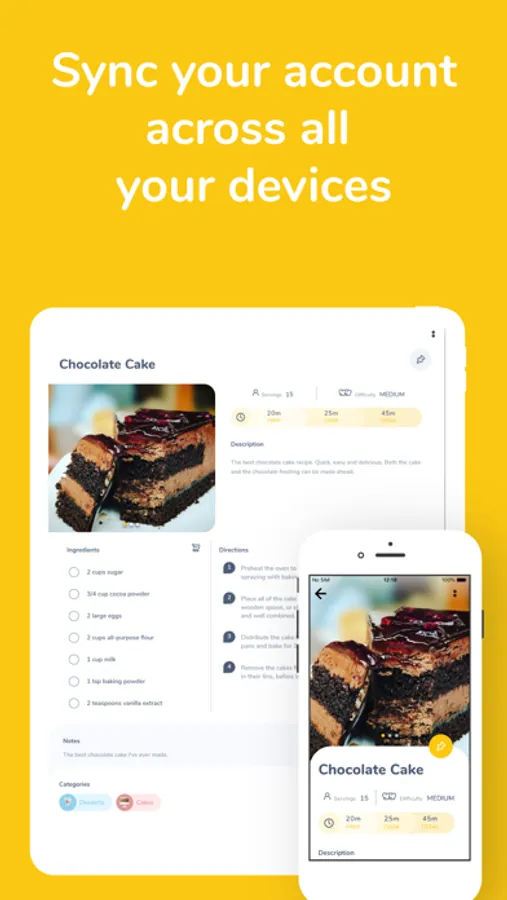 - Sync - Keep your recipes, categories, grocery list and meal plan backed up on our cloud server and synced between all your devices.