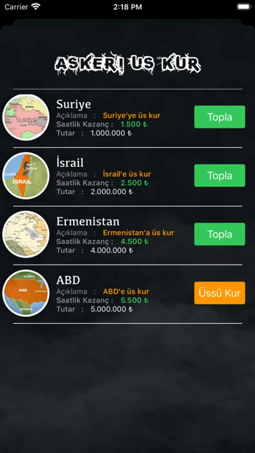 Sizlere verilmiş olan görevleri uygulayarak kasadaki paranızı ve canınızı artırabilirsiniz. Satın almış olduğunuz K paralarını yatırım yaparak nakit paraya çevirebilirsiniz. Farklı ülkelere kurmuş olduğunuz askeri üsler sayesinde paranızı daha da artırabilirsiniz. Daha önceden almış olduğunuz askeri materyalleri 30 saniyede bir güncellenen fiyat listesiyle satışa çıkartabilirsiniz. Böylelikle paranızı katlayabilirsiniz. Koruma kuvvetlerini yükseltebilir, savaşta güçlü olan taraf olabilirsiniz. Farklı donanım ve silahlara sahipseniz, savaştayken tekrar ikinci bir şansınız olabilir.