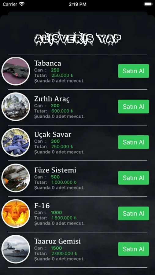 Komando Mobile oyununun alışveriş yap bölümünden dilediğiniz teçhizatı edinebilirsiniz. Tabanca, zırhlı araç, uçaksavar, füze sistemi, f-16 uçağı, taarruz gemisi gibi teçhizatları yeterli nakit paranız varsa alabilirsiniz. Yeterli paranız bulunmuyorsa banka bölümünden kredi çekip daha sonra yaptığınız yatırımların getirisiyle kredi borcunuzu kapatabilirsiniz.