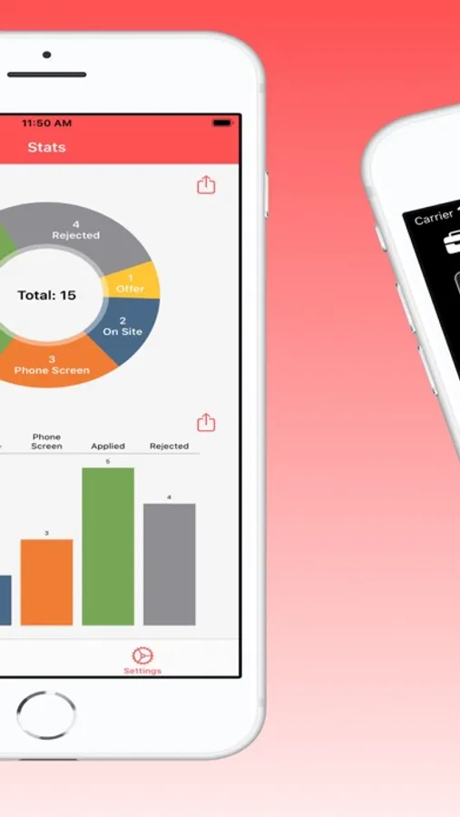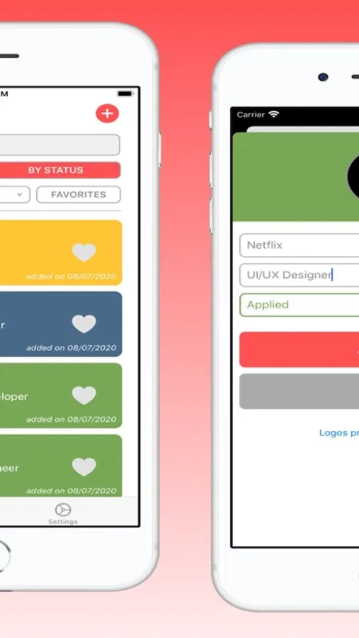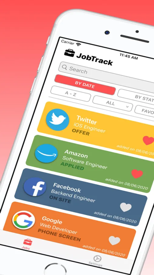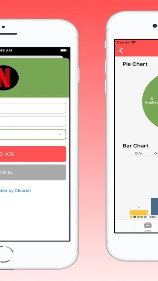 JobTrack gives you the ability to add a job and assign a status to it, which are all distinctively color coded. As you type in the company name, their logo automatically shows up - no need to upload. At any point in your job search, you are able to view all of your application stats in chart form which displays the number of applications in each status.