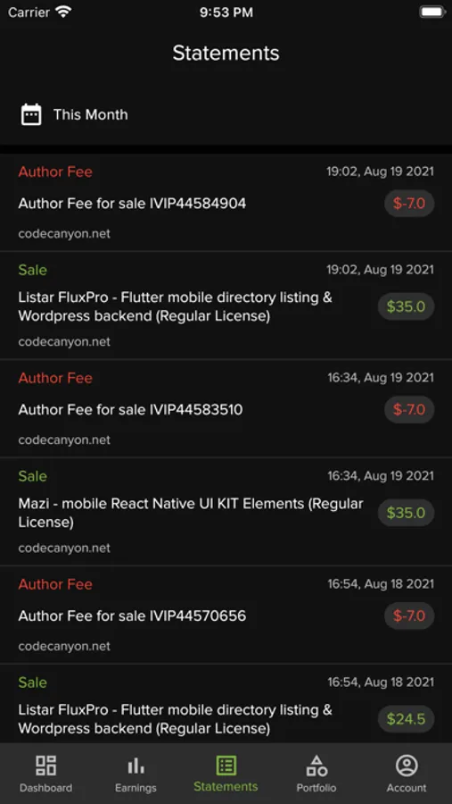 - Statements (sales, author fees, purchases, withdrawals, etc.)