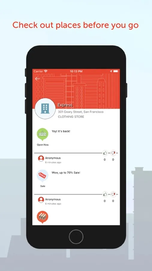 ◦ Stay ahead of the game by checking out, in real-time what's happening at your favorite places.