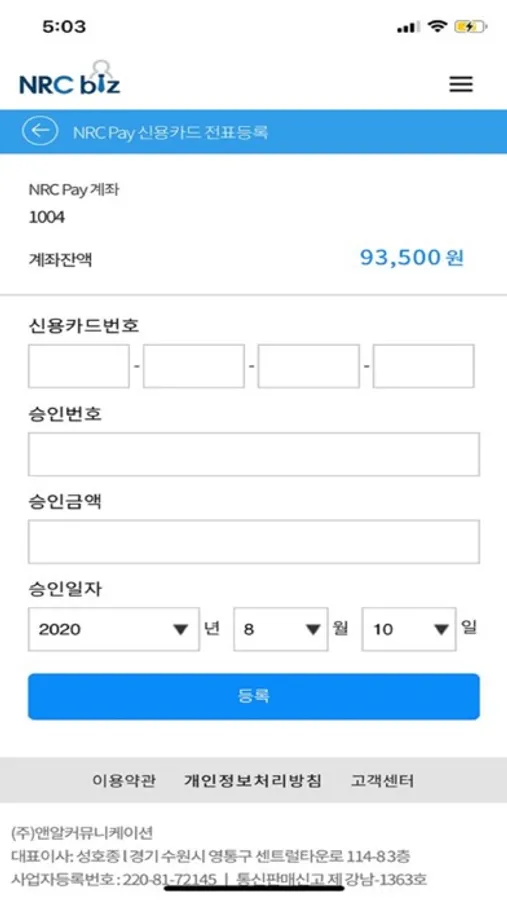 -앤알커뮤니케이션 모바일 마이비즈 연동