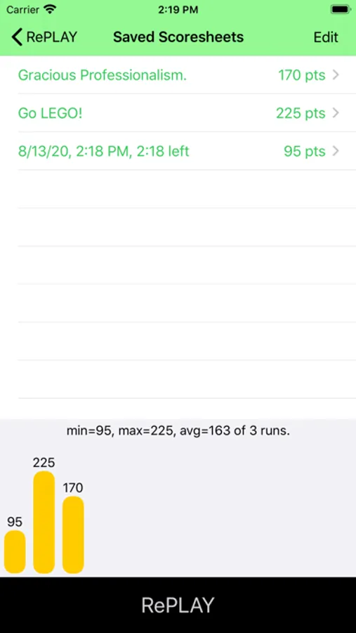 * Graph of scores to monitor progress over time, plus basic statistics on saved scores.