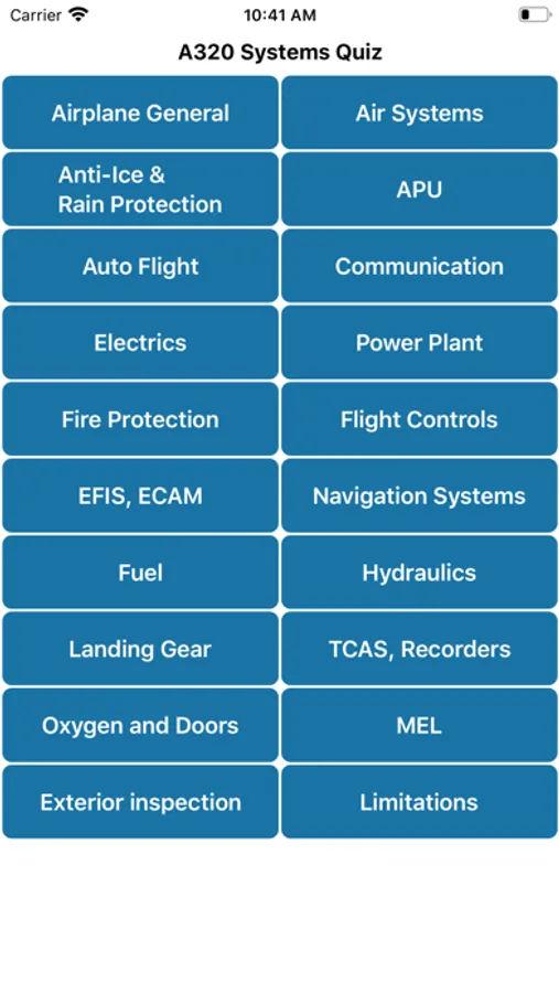 This app is designed for A320 Family Pilots, to prepare them for an aural exam and/or review. The questions are randomized in every chapter and the answers are multiple choice.