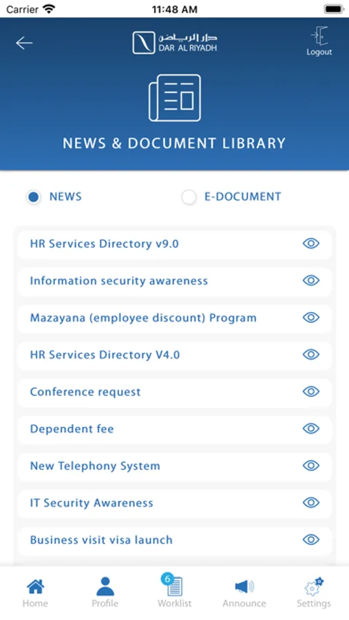 A mobile application that can help the Dar Al Riyadh employees access their self-services anytime anywhere.
