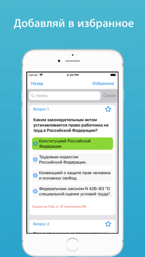 • Работа над ошибками - в режимах "Экзамен", "Марафон" и "Тренировка в избранном" Вы можете сделать работу над ошибками.