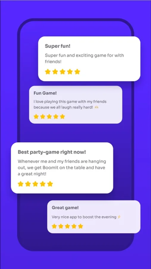 Get ready to have a blast with Boomit Party! This is the ultimate party game app that will fire up any occasion. It offers fast-paced gameplay and explosive fun, making it the perfect choice for you and your friends.