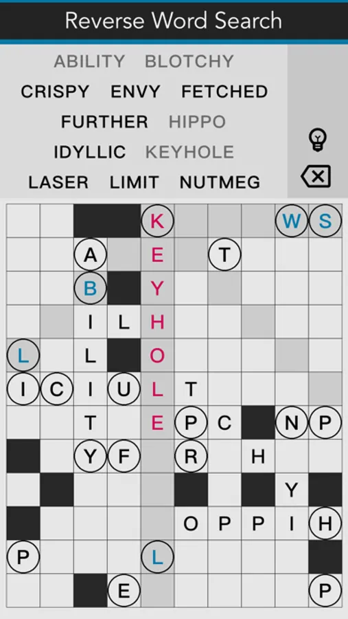 - Free hints. Tap a word/number on the list for a hint (the location of its first letter/digit). For Reverse Word puzzles, tap the hint icon first.