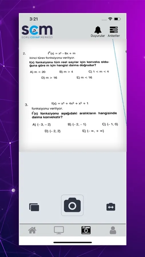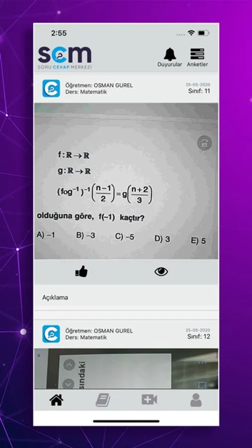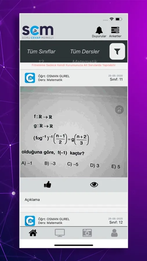 Öğrenciler sorularını branş öğretmenlerine fotoğrafını çekerek ve soru metnini girerek sorabilirsiniz.