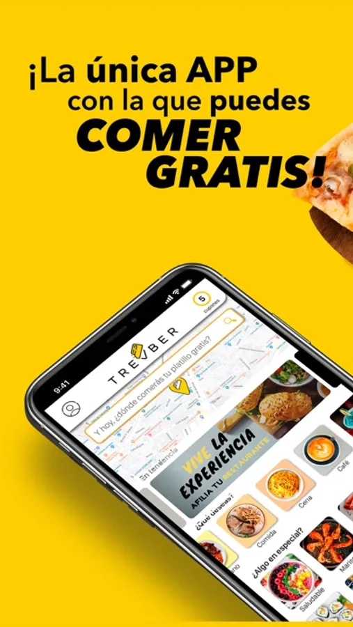 Come gratis con Trevber , somos una plataforma digital en donde los restaurantes y personas comparten experiencias a través de la comida.