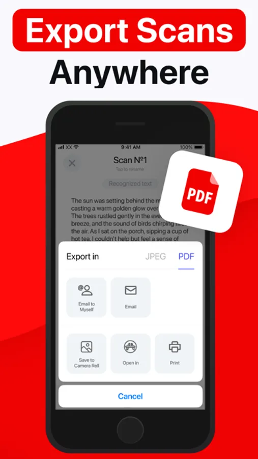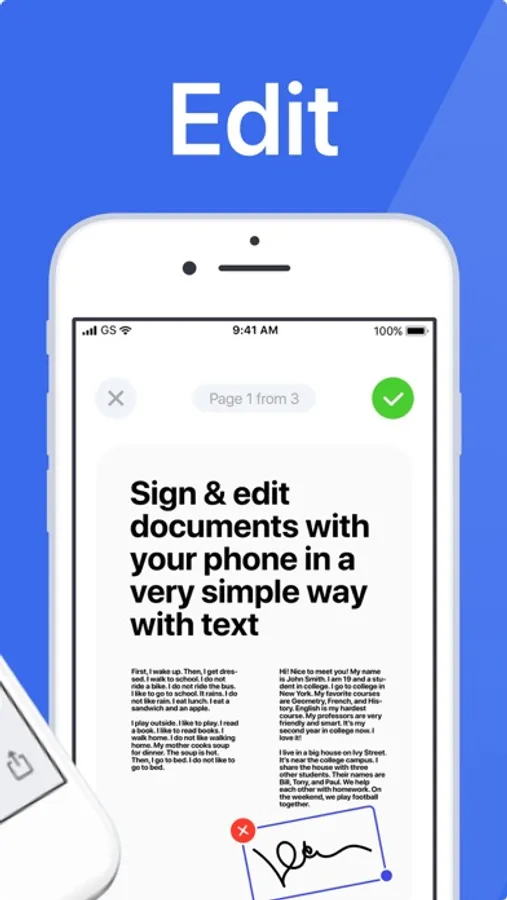 With our app, you can scan, edit, sign, store, and share your docs in PDF.
