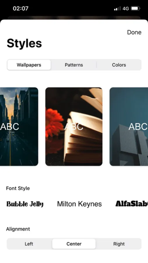 • Select the background you want, choose between Wallpapers, Patterns, or Colors from our free collection.