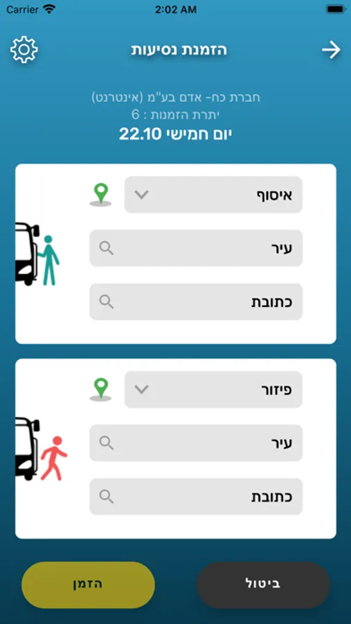 השימוש באפליקציה מחייב קבלת שם משתמש וסיסמה ממנהל ההיסעים האירגוני.
