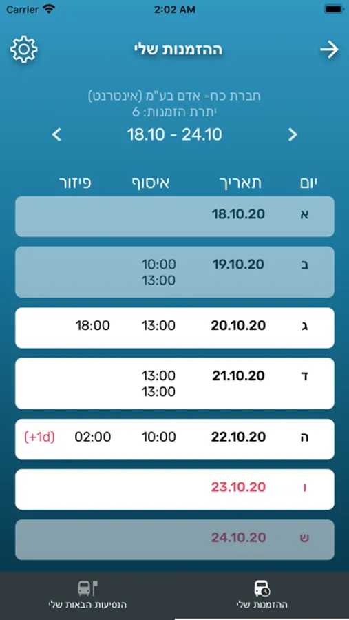 לנוסעים ניתנת האפשרות לראות באיזו שעה צריכים לאסוף אותם ומהי תוכנית העבודה לשבוע הקרוב.