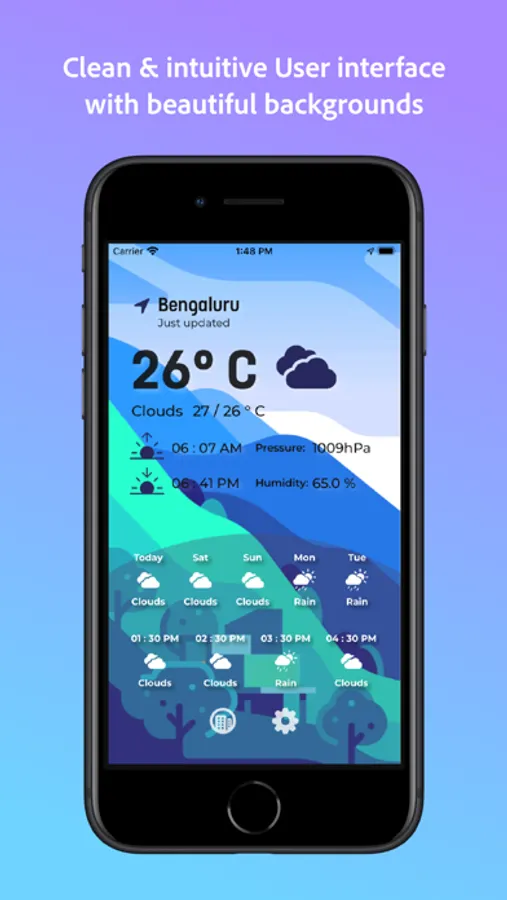 Intuitive UI - Enjoy a clean and subtle layout with stunning backgrounds that change according to the weather. Get all the relevant information you require, without any distraction.