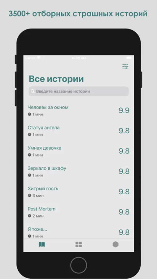 - СОРТИРОВКА. Сортировка по имени, рейтингу и продолжительности чтения (для каждой истории рассчитывается примерное время на прочтение, не теряйте времени на поиск истории нужной длины).