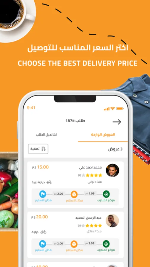 You can receive many offers from providers within your order area according to the lowest delivery cost, the closest receipt place, or the most evaluated provider to reach the best offer.