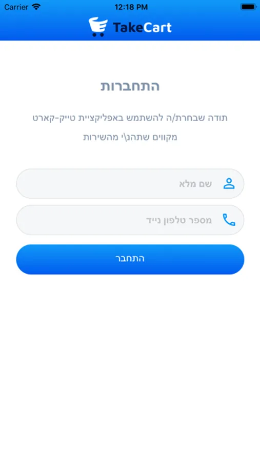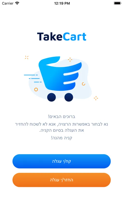Take Cart מאפשרת בצורה פשוטה ונוחה לקחת עגלה מהסופר באמצעות סריקה קוד QR בלבד.