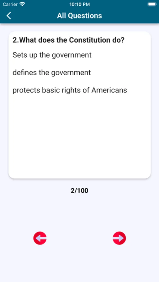 Use this app to get the idea of answers for all the questions for US Citizenship Test. Flash cards for all questions. You can see in random order or sequential. Moreover, you can also take free quiz test to enhance your skill for the test. You can change questions setting as you need.