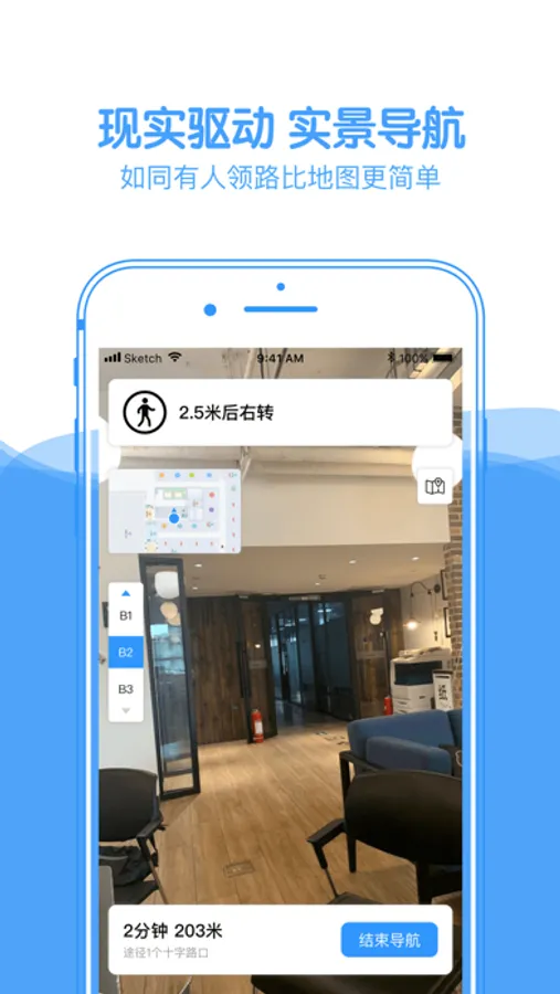 灵鹿通过智能手机终端自带传感器的无源定位导航技术,不需要借助Wifi、蓝牙、UWB等设备信号(有源定位)进行室内定位,实现绝对低成本、高精度、易维护的室内AR导航服务。