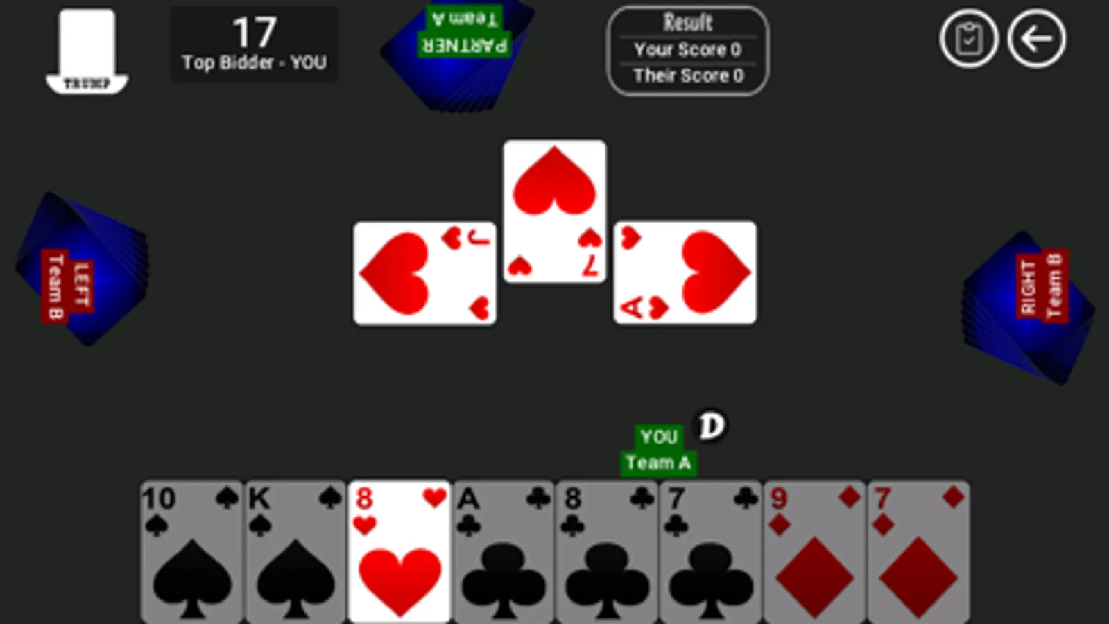 29 Card Champ is an Indian trick-taking card game for 4 players, in which the Jack and the nine are the highest cards in every suit, followed by ace and ten. Twenty nine Card game is a variation of the game that is popular in North India and Bangladesh.