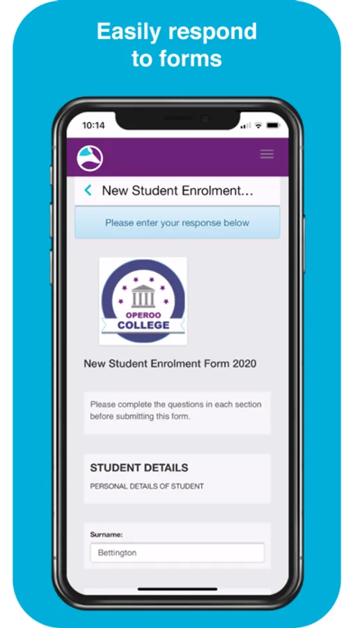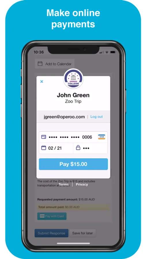 Parents use the Operoo Central App to respond to school forms, make payments and receive messages. Staff use the Operoo Central App to manage trips, mark the roll, log incidents, review medical data in an emergency, respond to staff forms and receive messages.