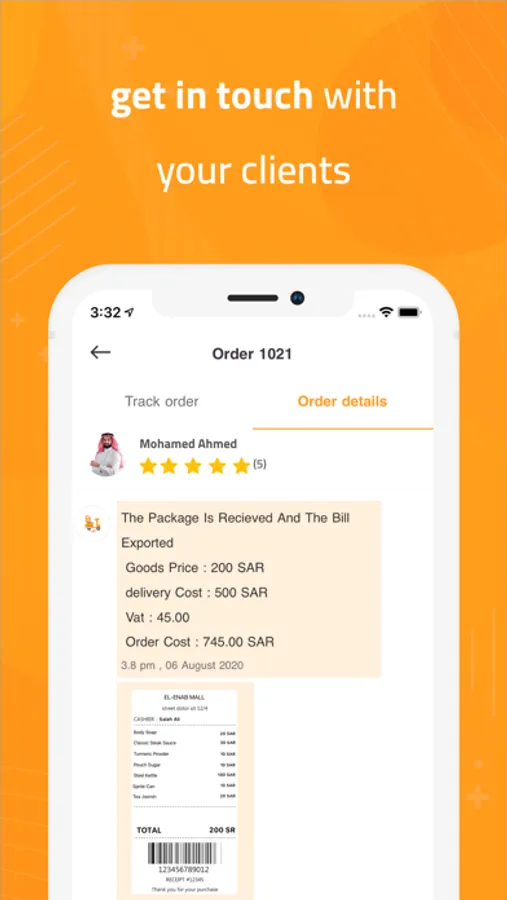 The application provides the ability to communicate with the client to confirm the order through the chat and inform him of every update of the order or inquiry.