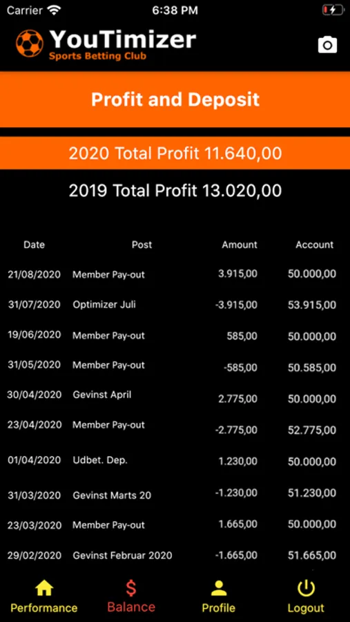 See weekly and monthly Profit and your account value for your youtimizer membership.