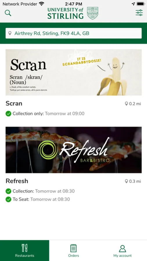 Use the Food at Stirling App to order and pay for all of your food and drink orders throughout the University campus outlets.
