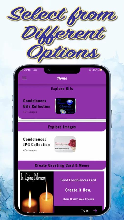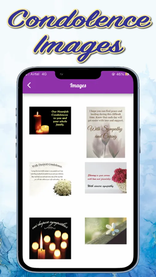 Note: The app requires an active internet connection to access the extensive collection of condolence messages, images, GIFs, quotes, and personalized e-cards.