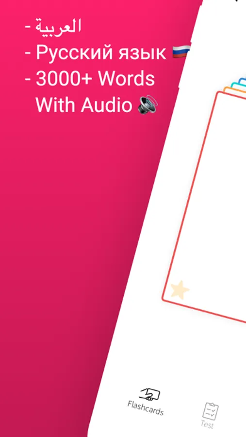 Whether you're a beginner or an advanced learner, our app offers three dynamic features to accelerate your progress: Flashcards, Word Tests, and the exciting Match Game. Start your language journey today and become a fluent communicator in both Russian and Arabic!"