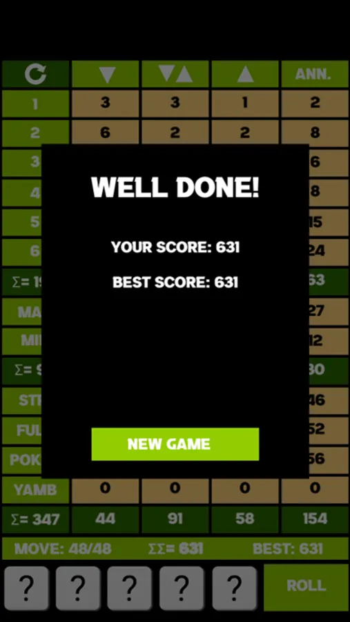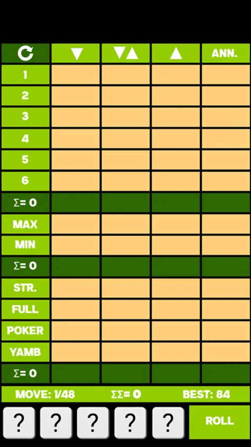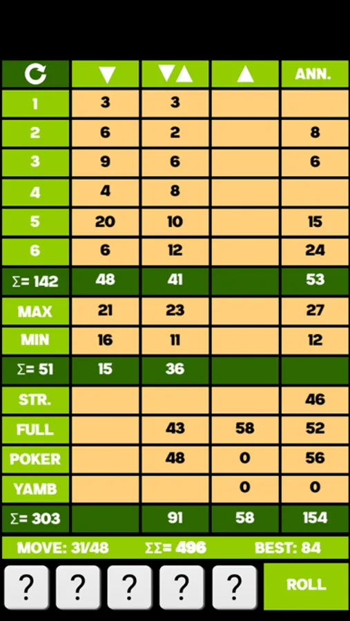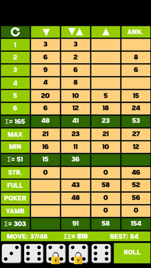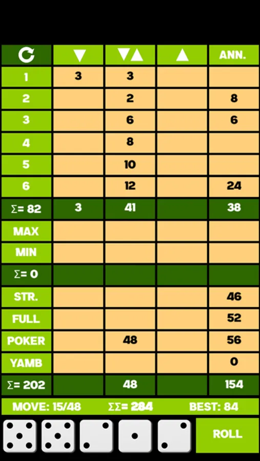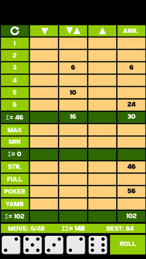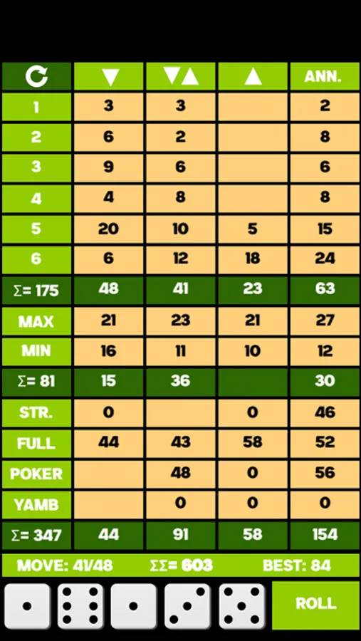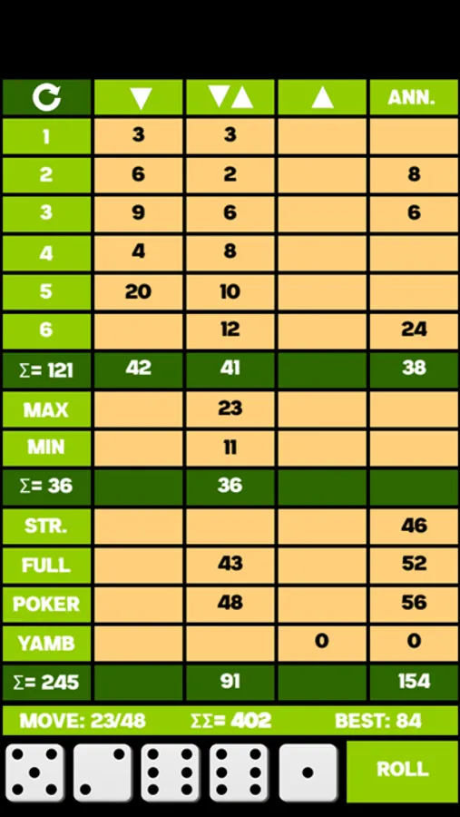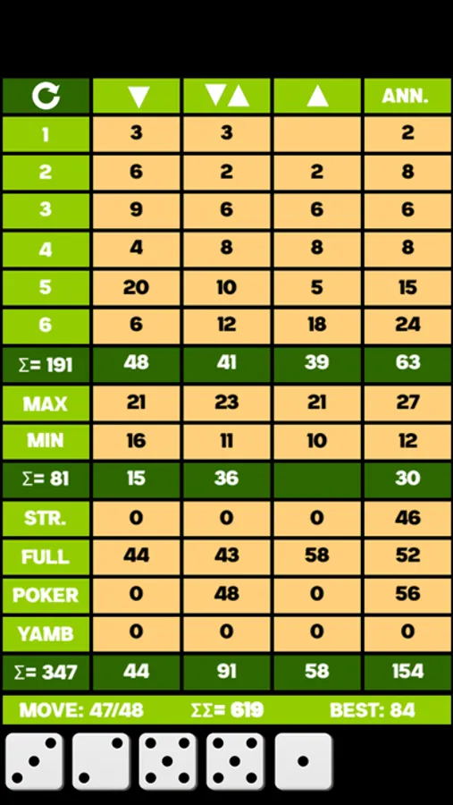 * Yamb: All five dice showing the same number (Score 50 + Sum of all five dice)