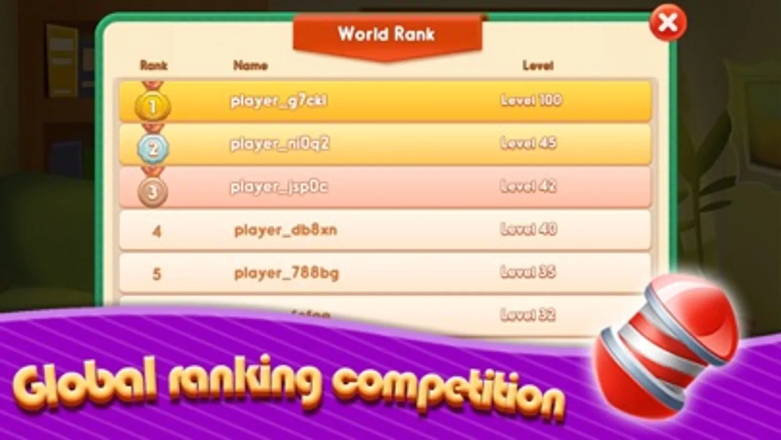Stages of increasing difficulty, players from all over the world compete together