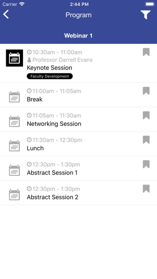 * Program Agenda - view the full agenda and related information (session times, room names, speaker info, and more).