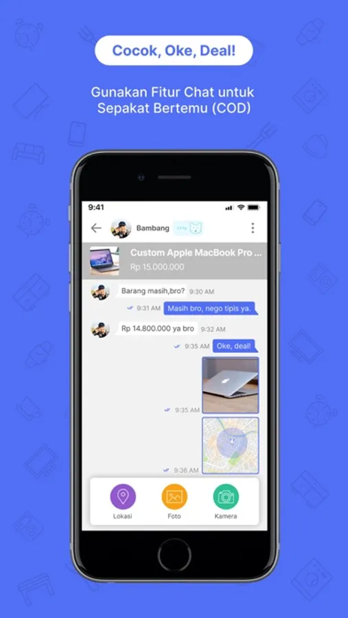 Mulai bertransaksi melalui fitur chat dan buat kesepakatan untuk lebih hemat dengan ketemuan. Bye bye ongkir!