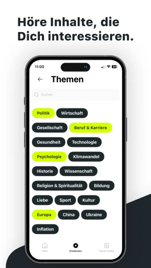Mit ARTICLY hast du Zugang zu den besten Artikeln aus führenden Magazinen und Zeitungen, die in hochwertige Hörartikel verwandelt wurden. Du kannst die Artikel jederzeit und überall anhören und bleibst so immer über das Weltgeschehen informiert.