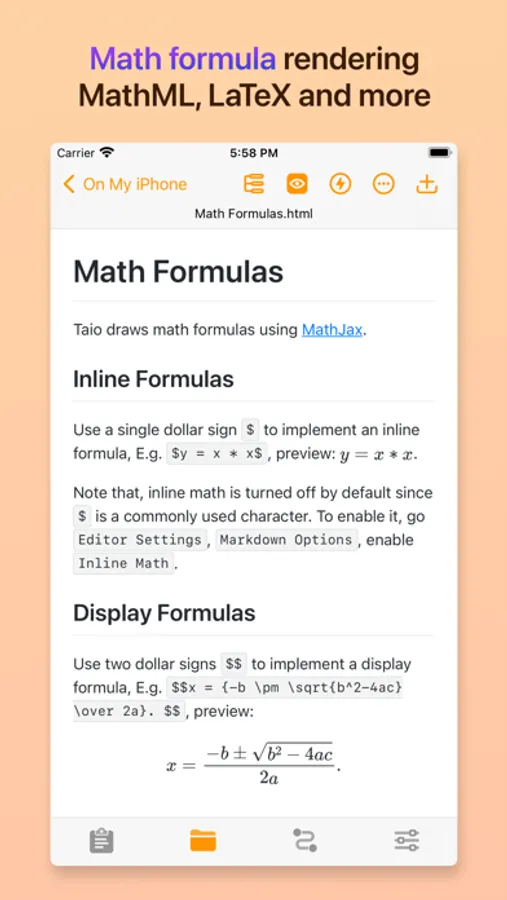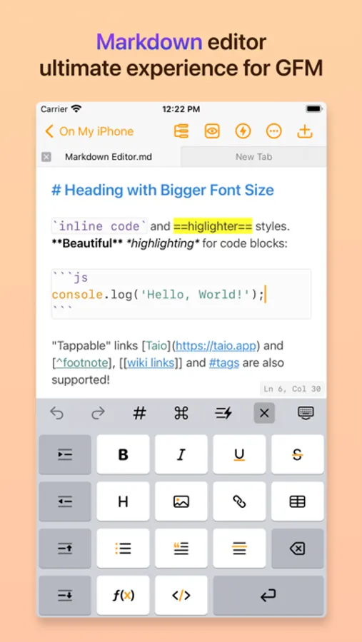 Taio provides a full-fledged **Markdown** editor, it supports `CommonMark` and `GitHub Flavored` standards. Instead of telling you everything, we would like to highlight some great stuff here: