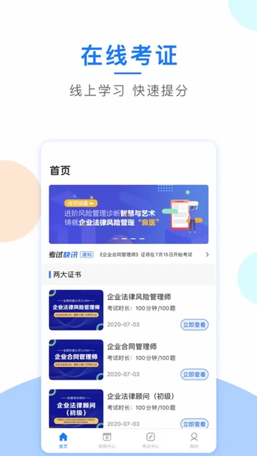 法律人才认证是专为法律精英人士搭建的专业法律培训平台,为全国提供优质便捷、高效的视频学习-题库演练-实时交互-证书考取-人才入库等全站式服务,内容超新、紧追热点、名家点评、权威认证。